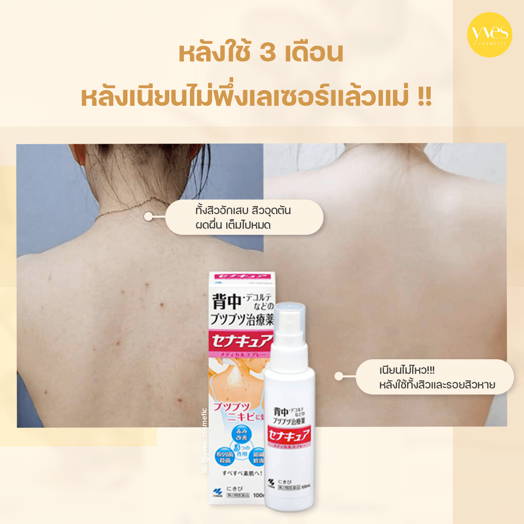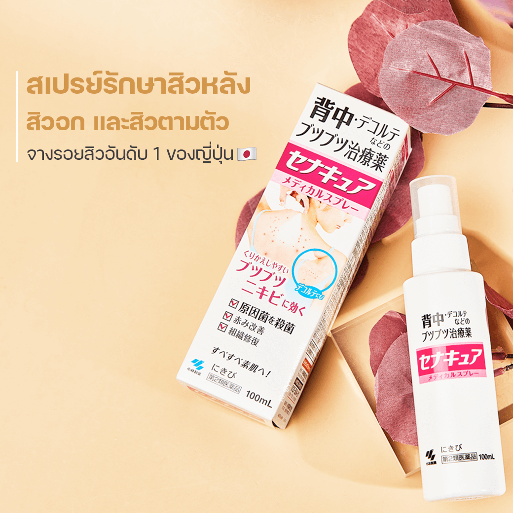 หลังอาบน้ำ ซับหลังให้แห้ง แล้วฉีด KOBAYASHI SenaCure Spray ให้ทั่วแผ่นหลังที่มีปัญหา ใช้วันละ 2 ครั้ง เช้า-เย็น โดยให้ฉีดห่างพอประมาณ หลังจากนั้นรอแห้งแล้วใส่เสื้อได้ตามปกติ