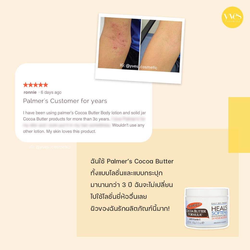 ทา PALMER'S Cocoa Butter Formula with Vitamin E Heals Softens ทั่วผิวกาย ก่อนนอน