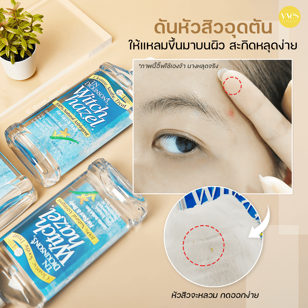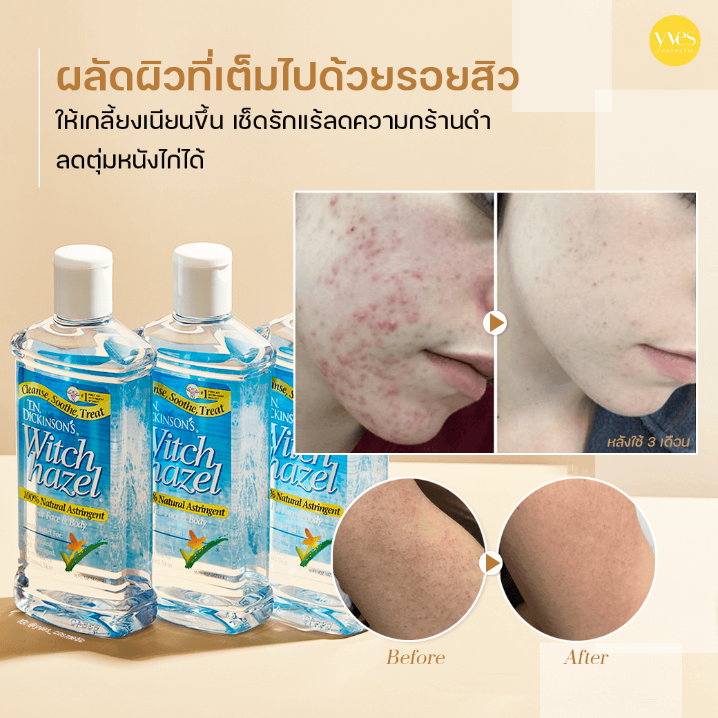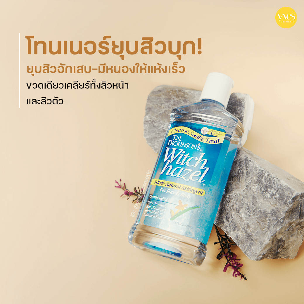 เท T.N. DICKINSON’S Witch Hazel 100% Natural Astringent ใส่ขวดสเปรย์ ฉีดเพื่อความสดชื่นและลดความมันบนใบหน้า ใช้แทนสเปรย์น้ำแร่ได้ หรือใช้สำลีเช็ด