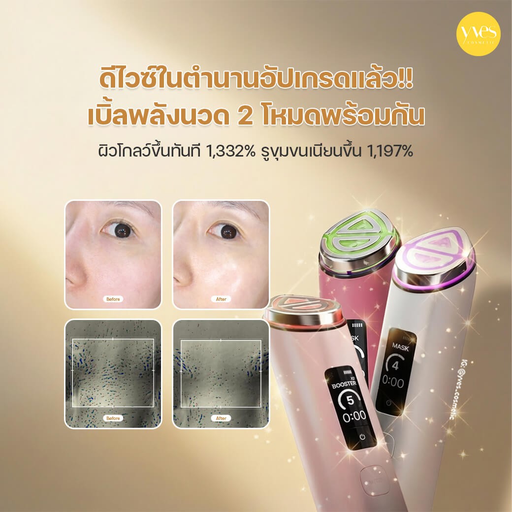 • ใช้ Booster Mode หรือ Dual Mode เพื่อช่วยผลักสกินแคร์ให้ซึมดี ผิวฉ่ำวาว