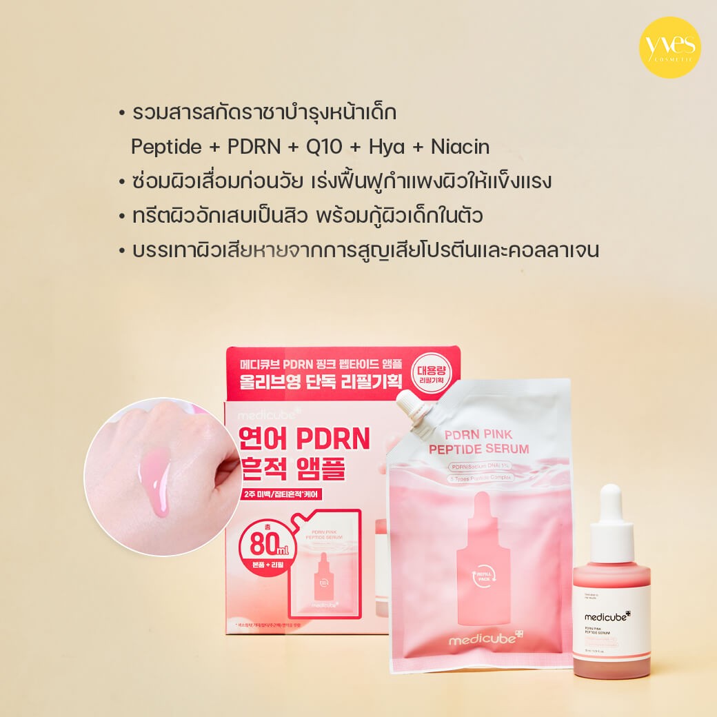 ทา Medicube PDRN Pink Peptide Serum Refill Pack Set เป็นประจำเช้า-เย็น