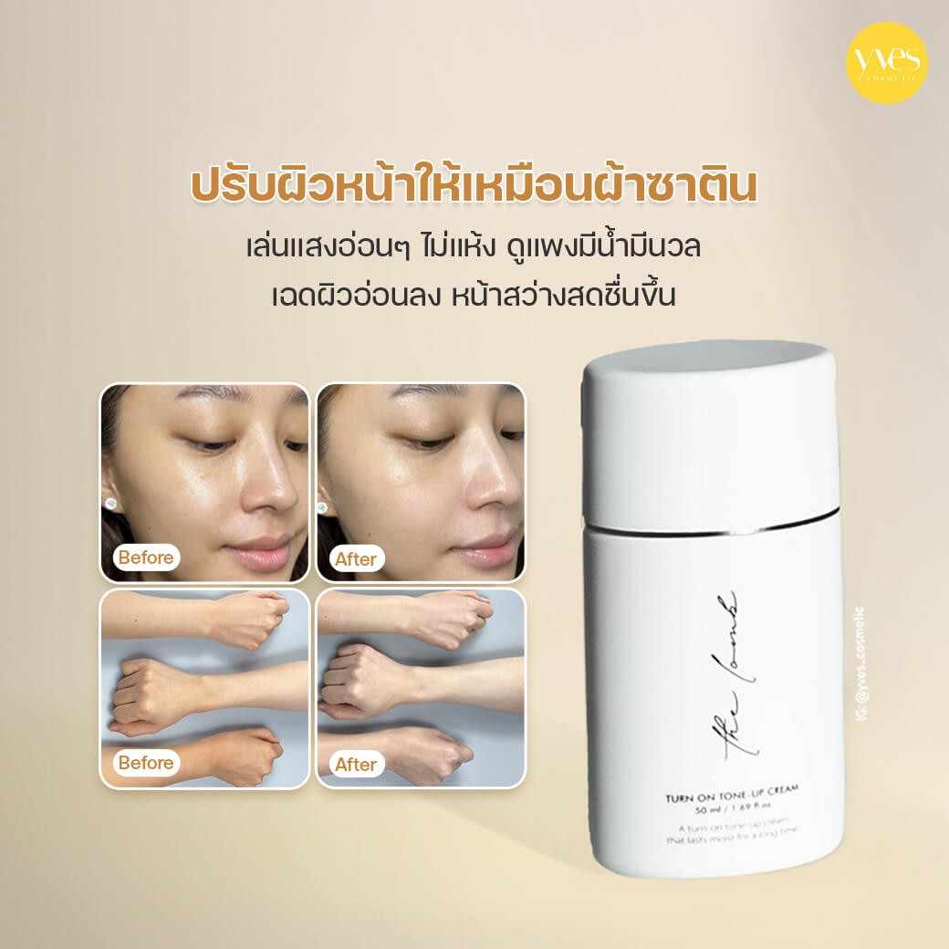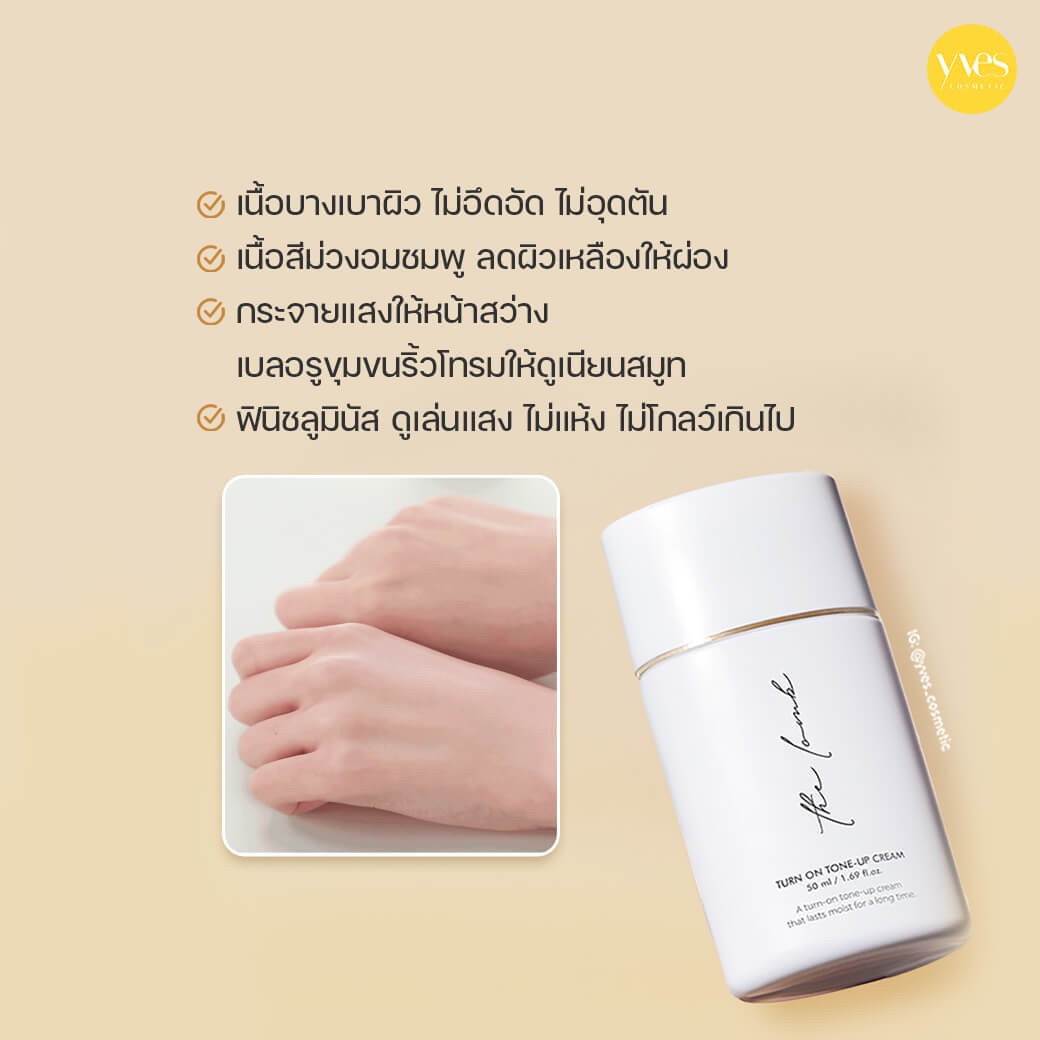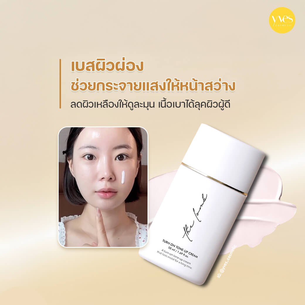 ทา The Lomb Turn On Tone-Up Cream บริเวณใบหน้า เกลี่ยให้เนื้อโทนอัพเข้ากัน