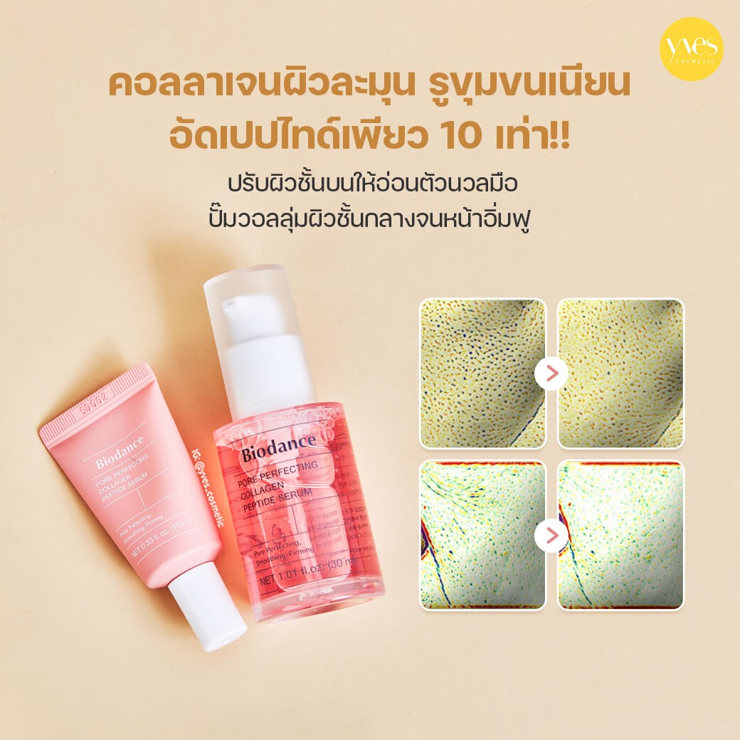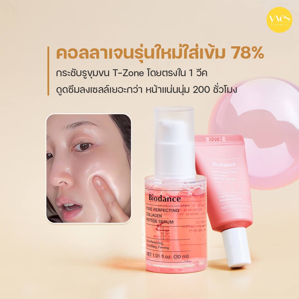 ใช้ Biodance Pore Perfecting Collagen Peptide Serum หลังลช้างหน้า นวดให้ซึมลงผิว