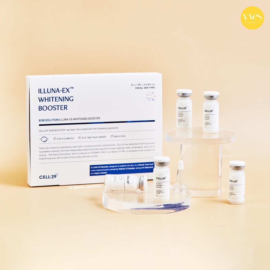 ใช้หลังล้างหน้า – ก่อนลงสกินแคร์อื่นๆ ให้หยด “ILLUNA-EX Whitening Booster” 2–3 หยด