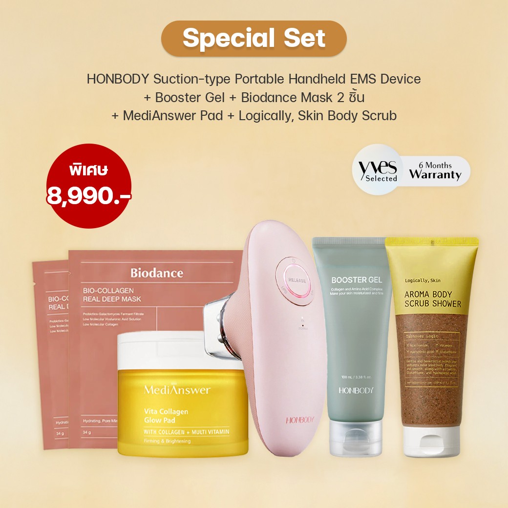 • เติมเจล แล้วนวดผิว 6 หัวนวดเบาๆ จนทั่ว (~5 นาที)
