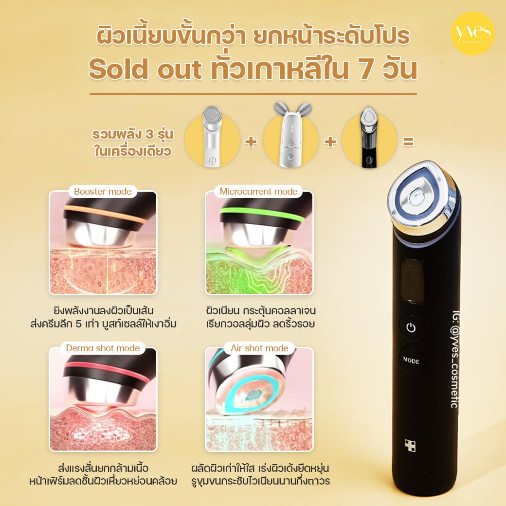 ก็รวมพลัง 3 เครื่องรุ่นเก่าใน 1 เดียวไปเลยสิแม่‼️ร่างทองสุดๆ วงการเครื่องผลักครีมสะเทือน 🙏🏻 ความรุ่น Pro อะเนอะ ใช้พลังได้ทีเดียว 6 อย่างพร้อมกันเพื่อปรนนิบัติผิวแบบพรีเมียม ผสมผสานออกมาได้ 4 โหมด อัปเกรดผิวชั้นสูงดูเนี้ยบครบทุกมิติ 6 in 1 ที่ว่าคือ