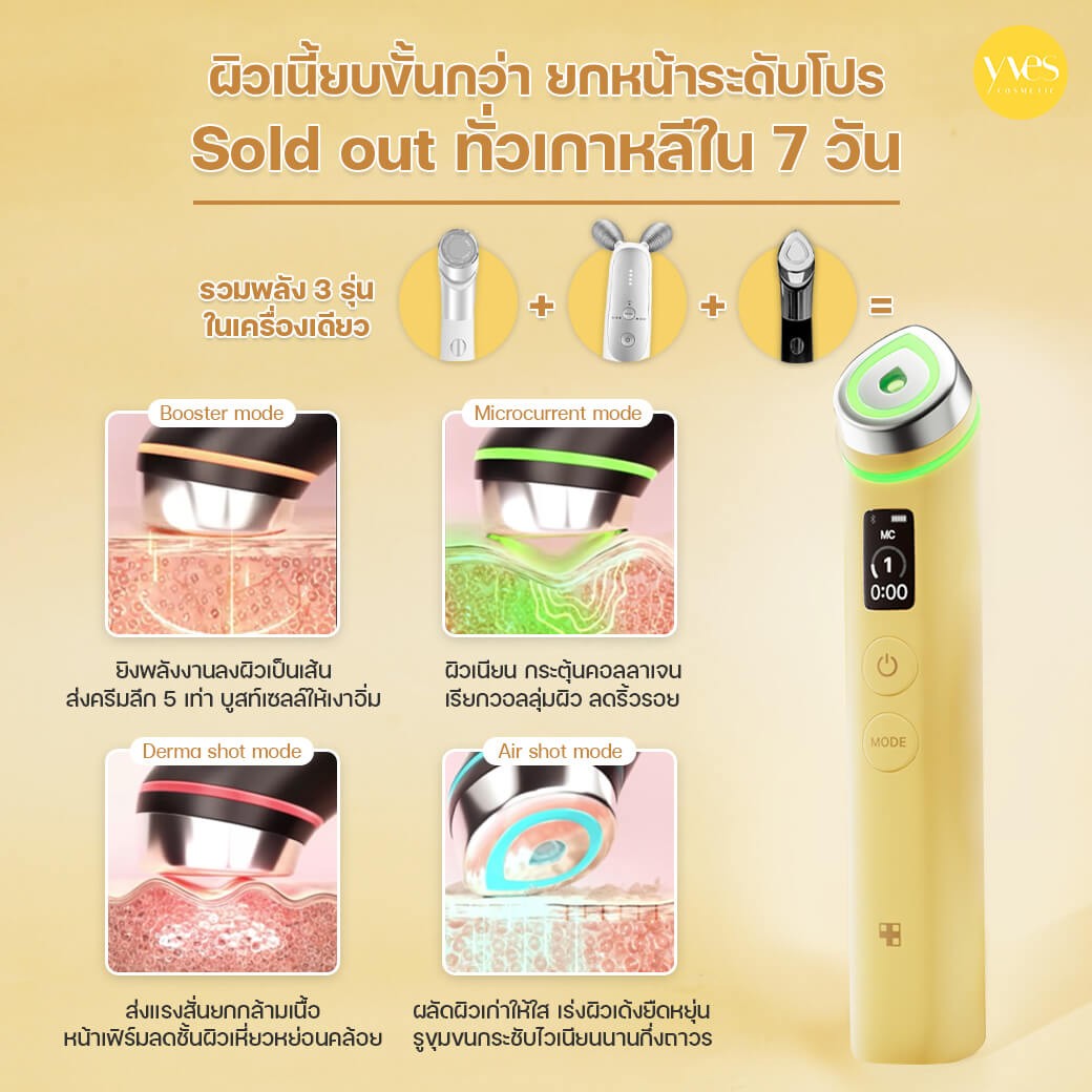 ก็รวมพลัง 3 เครื่องรุ่นเก่าใน 1 เดียวไปเลยสิแม่‼️ร่างทองสุดๆ วงการเครื่องผลักครีมสะเทือน 🙏🏻 ความรุ่น Pro อะเนอะ ใช้พลังได้ทีเดียว 6 อย่างพร้อมกันเพื่อปรนนิบัติผิวแบบพรีเมียม ผสมผสานออกมาได้ 4 โหมด อัปเกรดผิวชั้นสูงดูเนี้ยบครบทุกมิติ 6 in 1 ที่ว่าคือ