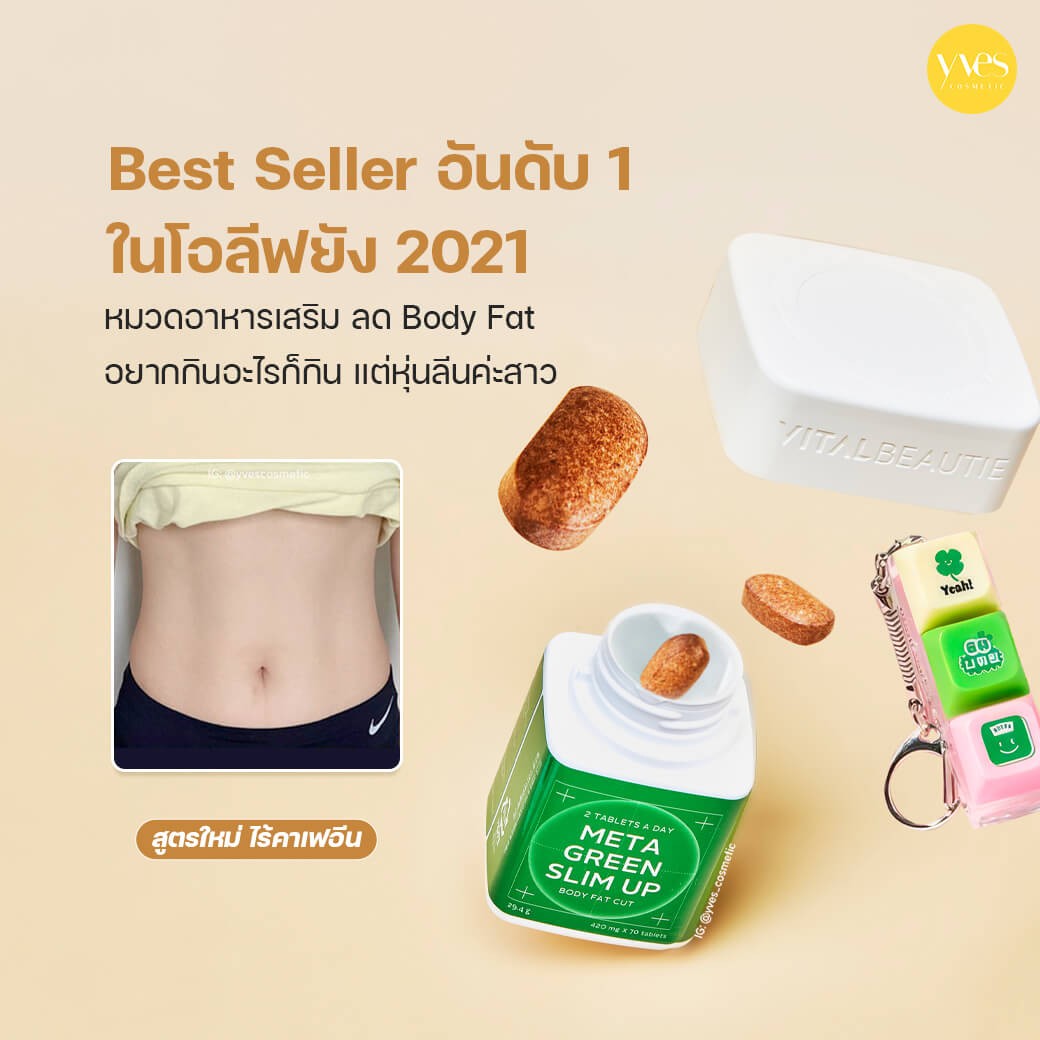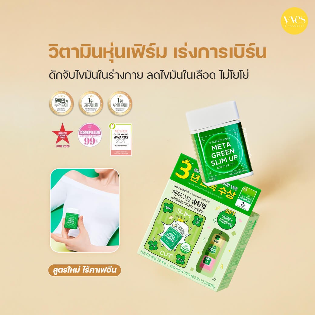 ทาน VITAL BEAUTIE Meta Green Slim วันละ 1 ครั้ง (ครั้งละ 2 เม็ด) สามารถทานก่อนนอน หรือหลังอาหารมื้อหนัก