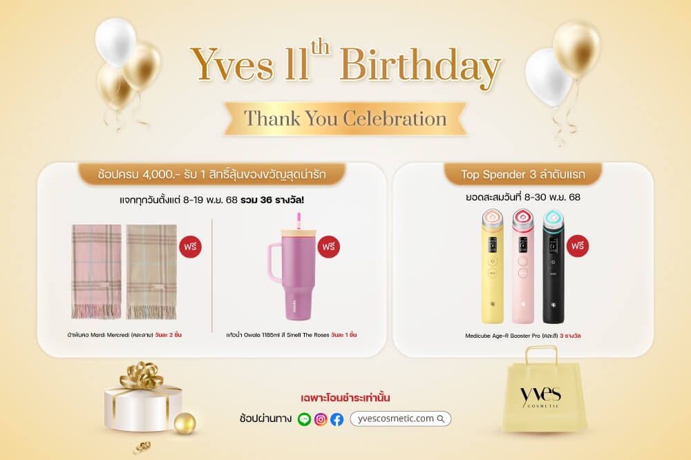 🎉 Yvescosmetic ครบรอบ 11 ปีทั้งที จะให้ผ่านไปเฉยๆ ได้ยังไง! 💖 อิ๊ฟขอขอบคุณทุกแรงช้อป ด้วย “ดีลพิเศษฉลองวันเกิด” 🎂